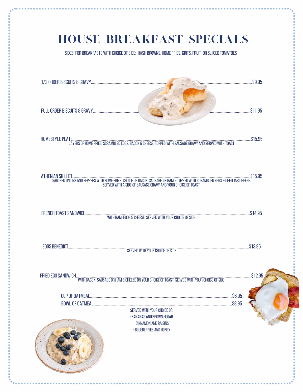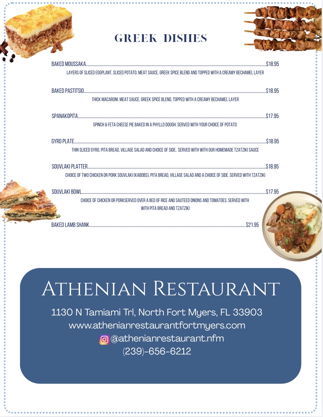Join us in our cozy, family-friendly dining room where you'll be treated like one of our own. Our friendly staff is dedicated to providing exceptional service to make your dining experience as enjoyable as possible. With our diverse menu and inviting atmosphere, Athenian Restaurant is the perfect spot for any occasion!